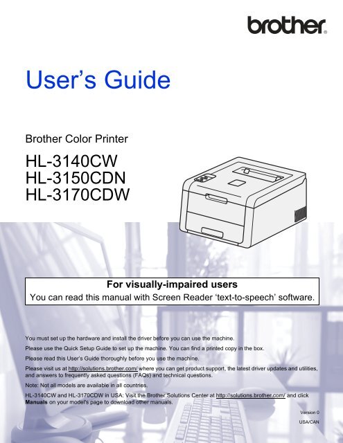 Find official brother hl3170cdw faqs, videos, manuals, drivers and downloads here.